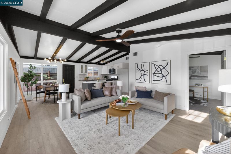 Completely renovated and designed for modern living, this stylish 3-bedroom, 2-bath home features a bright open-concept layout where the kitchen, dining, and living areas flow seamlessly together. The stunning kitchen is the centerpiece, complete with a large island, sleek stainless steel appliances, and beautiful laminate flooring that runs throughout the entire home. Step outside to a massive backyard offering endless possibilities—create your dream outdoor retreat with a pool, build an ADU, expand the home, or design the ultimate outdoor entertaining space. A rare opportunity to own a move-in ready home with both modern upgrades and incredible future potential.