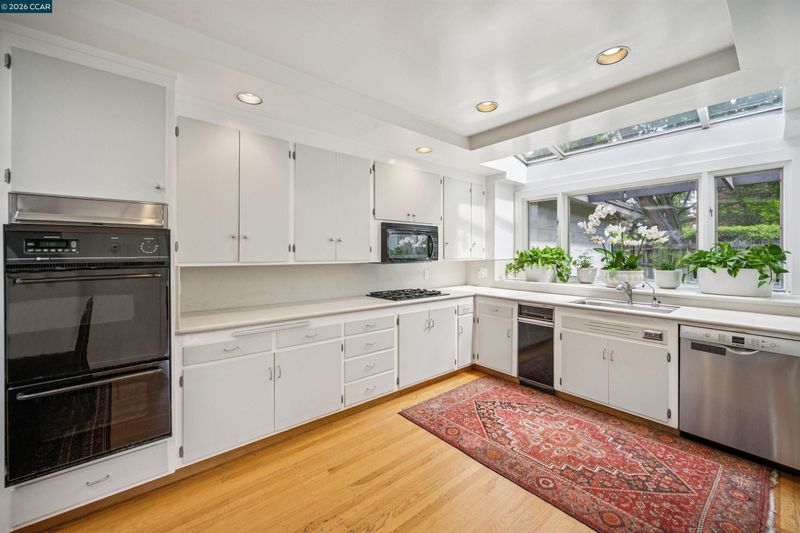 - Dishwasher, Double Oven, Gas Range, Microwave, Oven, Range, Refrigerator, Gas Water Heater, Counter - Solid Surface, Eat-in Kitchen, Gas Range/Cooktop, Oven Built-in, Range/Oven Built-in, Skylight(s)