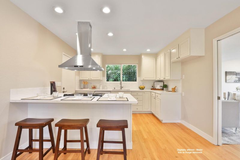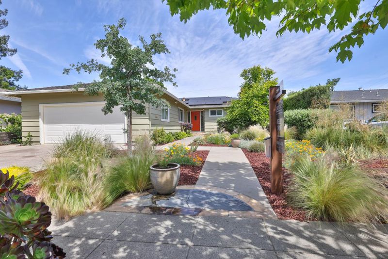 TASTEFULLY UPDATED SINGLE STORY HOME! The drought-resistant front yard creates standout curb appeal with thoughtful design. Formal entry leads to an open-concept kitchen with flexible space for dining or potential family room. The kitchen is tastefully upgraded with new quartz countertops, subway tile backsplash, new oven/range and overhead hood vent, a breakfast bar, and recessed lighting. Bright spacious living room with skylight and oversized sliding glass doors to the tranquil backyard. Peaceful primary suite with backyard access, generous closet, and remodeled bath featuring a new vanity, new tiled shower and flooring, and new fixtures. Two additional bedrooms provide flexibility for guests, home office, or growing needs. The hall bathroom updated with new tiled shower/tub enclosure and flooring, and new double vanity with quartz countertop. The backyard is perfect for relaxation and entertaining, featuring fruit trees, lush new lawn and refreshed landscaping. Gleaming refinished hardwood floors, new interior/exterior paint, central forced heat and A/C, solar panels, two 240-volt EV receptacles, indoor laundry, and much more! Close to top-rated schools, shopping, dining, and commute routes. This turn-key home is a perfect blend of comfort, style, and convenience!