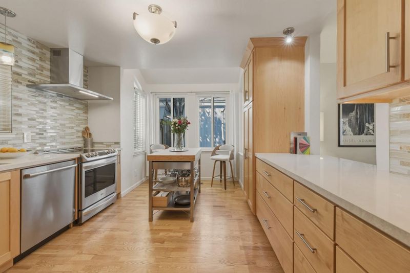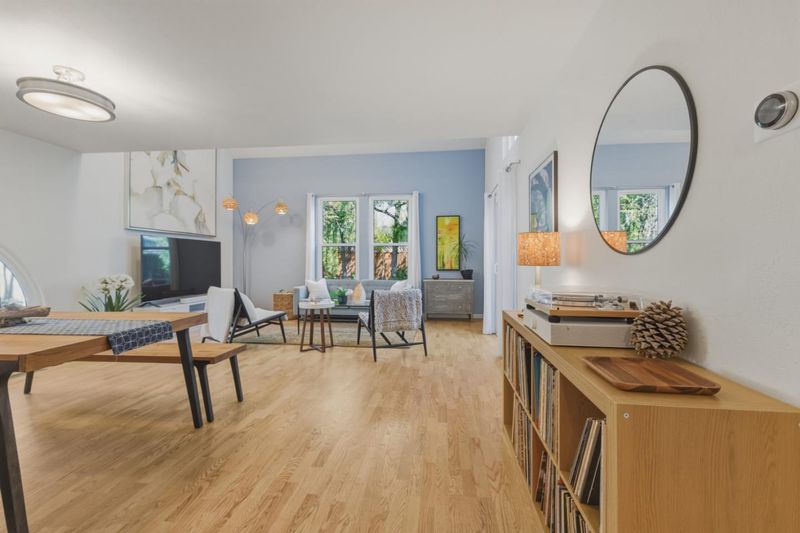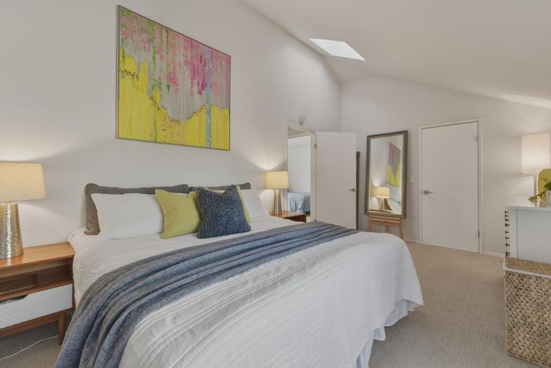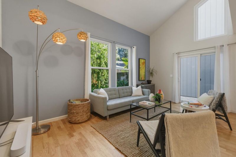 With three bedrooms, you'll have the freedom to design your own home office(s). The designer kitchen and bathrooms offer upscale cabinetry, appliances, lighting, and double vanities. This inviting floor plan is bathed in natural light, with dramatic vaulted ceilings and tranquil treetop views. Significant improvements include a newly rebuilt roof, new siding, new fencing, new landscaping, and hardscaping in a garden backyard with 11 mature trees. Interior improvements include energy-efficient window replacements, bathroom remodeling, California Closets, wood floor resurfacing, and elegant accent walls throughout. Situated in the desirable Los Altos High School area, this home is just a short walk to the new Aquatic Center and several parks popular with families and dog owners. Commuters will love the easy access to Caltrain, work shuttles, and Central Expressway. Some of the best dining and entertainment in the Bay Area are only minutes away in downtown Mountain View and Palo Alto.