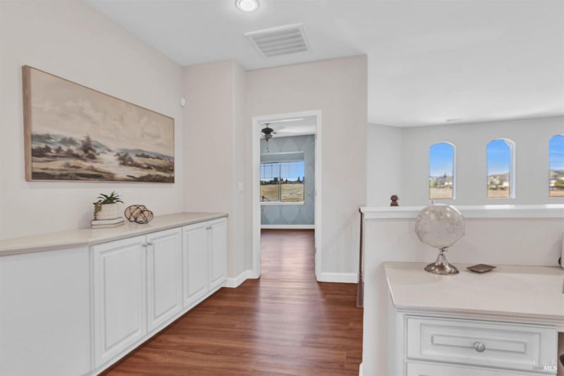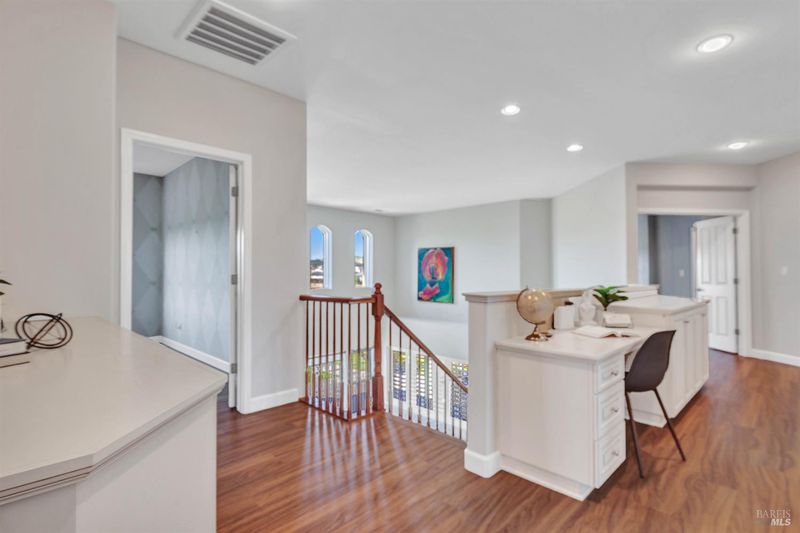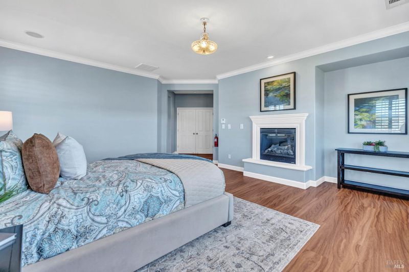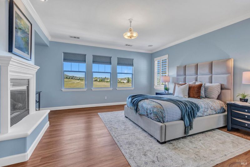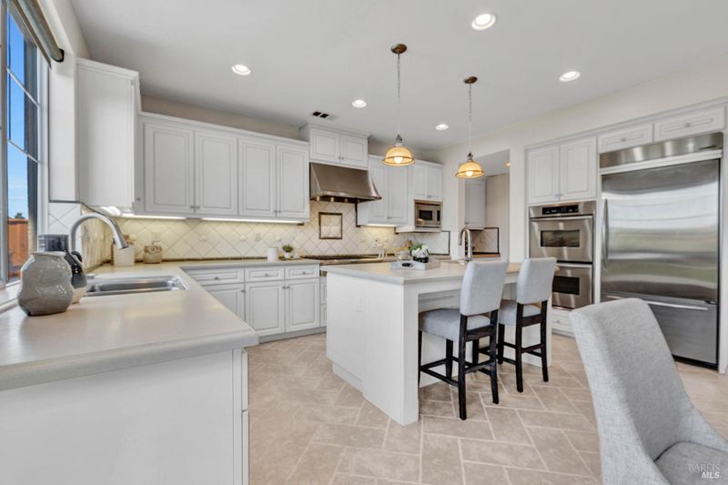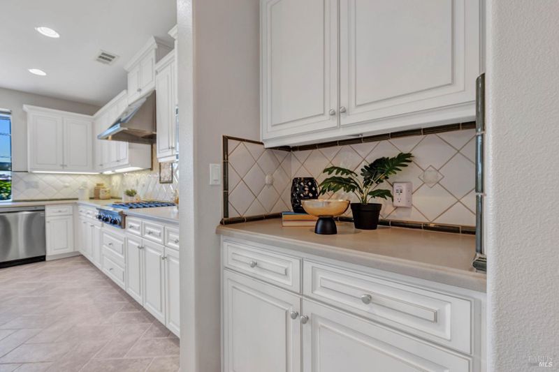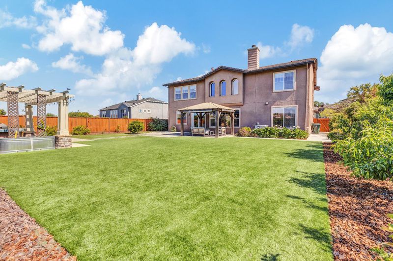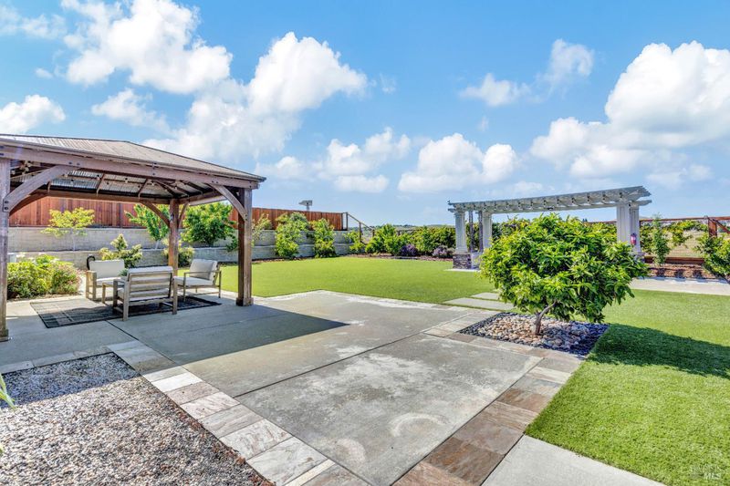 On a premier lot in the Waters End neighborhood of Benicia, 378 Piercy Drive features beautiful spaces inside and out, scenic hillside views, and an improved floor plan. The premium lot enhances curb appeal and possibilities, with an extra large front driveway, a spacious and level backyard with privacy and views. Outdoor features include artificial turf, a pergola and outdoor kitchen with gas line, a tiered side yard with newer retaining walls hosting an exotic array of fruit trees for year-round enjoyment. A highly desirable lower level bedroom/bathroom addition en suite not typically found in this floor plan with a walk-in closet, built-ins and privacy all on its own (built/permitted 2022). A formal living room with beamed ceilings and a formal dining room with custom built-ins add warmth and character. See the views from the kitchen, enjoy a large island with seating, KitchenAid appliances, a six-burner gas range with hood, walk-in pantry, a separate bar area, French doors to the yard, and a great room adjacent to enjoy cozy evenings by the fireplace. The upstairs primary suite caters to relaxation with a fireplace, privacy, and space. Remodeled primary bath (2024). Practical home upgrades include dual pane windows, water heater (2020), 3-car garage, newer redwood fencing, tile roof and owned solar. A walking trail through the open space behind the house leads to the community park and Lake Herman recreation area. Located in charming Benicia, where residents enjoy highly-rated schools, a vibrant downtown, waterfront recreation, and year-round community events.