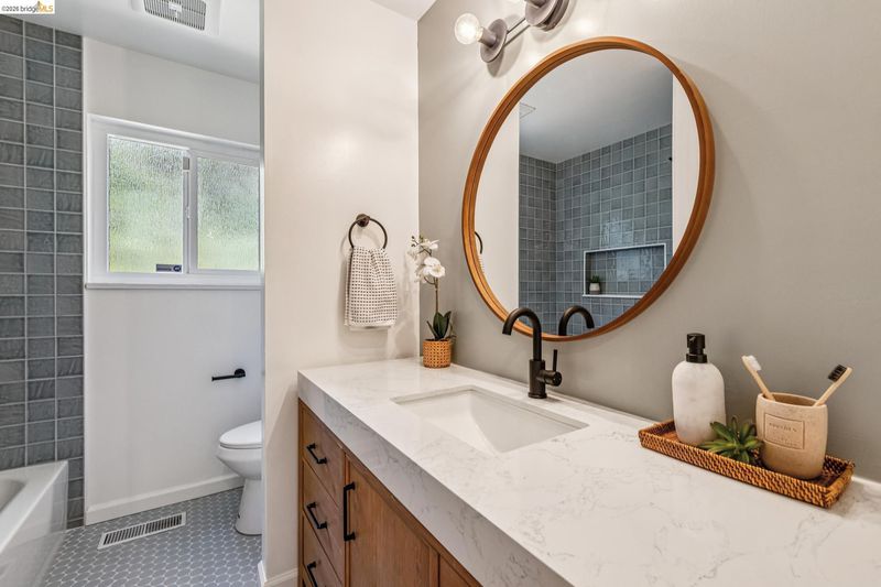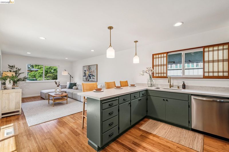 Discover a sanctuary of peace and modern sophistication in this meticulously remodeled El Cerrito gem. Held by the same family for decades and recently updated with permits, this 3BD/2BA Mid-Century Modern home seamlessly blends Japanese-inspired aesthetics with high-end contemporary finishes. A serene Zen garden welcomes you with a peaceful walkway, bridge, and plum trees. Inside, gleaming bamboo floors lead to an expansive living area with a stone hearth and a dining space overlooking a central courtyard — perfect for al fresco meals. The chef’s kitchen features new stainless appliances, designer lighting, and a bonus lounge for easy entertaining. The primary suite is a true retreat with shoji screens, views of a magnificent wisteria, and a premium en suite with a double vanity. Two additional light-filled bedrooms offer ample closet space and hardwood floors. The sunny backyard is an orchard oasis with Asian pear and apple trees. Located steps from Korematsu Middle School, Castro Park, and the El Cerrito Swim Center, you’re also just minutes from hiking at Canyon Trail Park and the Ohlone Greenway. With a rare 2-car garage and easy access to BART or the Transbay bus to SF, this home offers the perfect balance of tranquility and urban convenience. Experience a home that truly nourishes the soul.