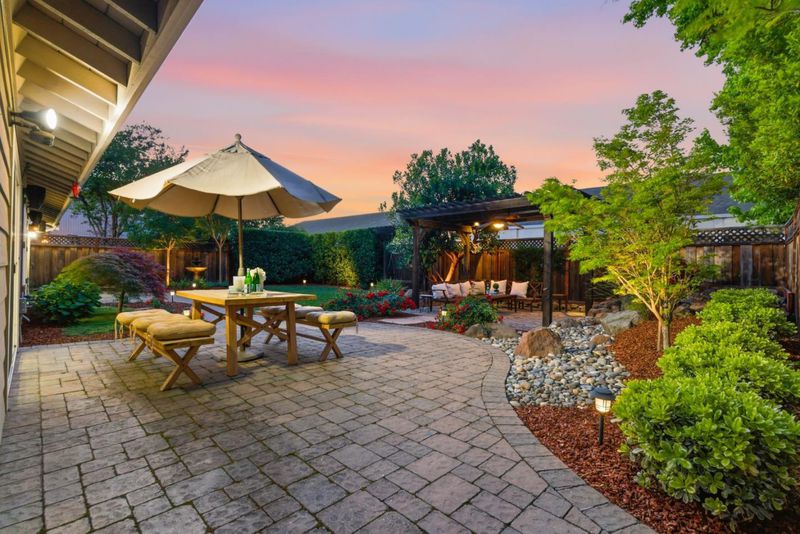 Welcome to this beautifully maintained 3 bedroom, 2 bath home in a sought-after Gilroy neighborhood, offering a perfect blend of comfort and inviting outdoor living. Lush landscaping, blooming gardens and tranquil fountains create a peaceful backyard retreat, complemented by paver patios and a pergola, ideal for relaxing and entertaining. Inside, soaring ceilings in both the living and family rooms provide a bright, open feel. The home features fresh interior paint, newly installed recessed lighting and an updated kitchen with granite countertops and stainless steel appliances. The spacious primary suite with high ceilings includes French doors that open directly to the backyard, offering seamless indoor-outdoor living. Ideal location near golf courses, wineries, parks, local schools and shopping, this home combines a serene setting with everyday accessibility. A rare opportunity to enjoy the best of Gilroy living.